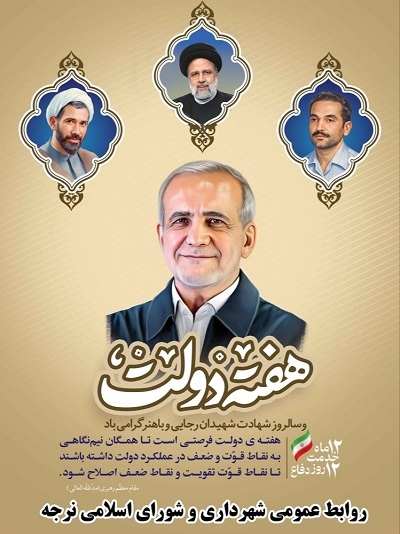 ضمن گرامیداشت یاد و نام شهیدان والامقام رجائی و باهنر ، هفته دولت را بر تمامی دولتمردان پرتلاش و جهادی تبریک عرض می نمائیم.